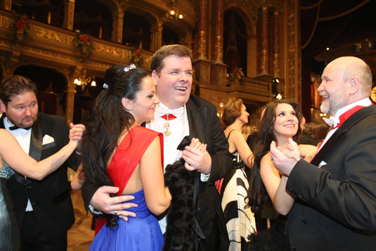 Az Operabál előírt öltözete férfiaknak a frakk, hölgyeknek a báli ruha volt, mint a Bécsi Operabálon is. Valójában nem volt meglepő, hogy nagyon sokan nem ebben az öltözetben jelentek meg, de még csak nem is szmokingban. Sötét öltönyben is sokan voltak, de több sportos öltözetet is láttunk. Igazi meglepetés erejével az hatott, amikor több férfi vendég ugyan szmokingot viselt, de fehér csokornyakkendővel. Utólagos feltételezés szerint ennek egy félreértelmezés lehet a hátterében. Ugyanis a meghívón a Dress code, azaz előírt öltözet esetén a frakkot – a nemzetközi szokásnak megfelelően – „White Tie”-nak azaz „Fehér nyakkendőnek” jelölik. Nos, ez lehet az oka, hogy többen így „újították meg” a szmokingjukat. Pedig ilyen kombináció sem az angol, sem az francia, sem az olasz divatban nem létezik. Aki be akarja tartani a protokollt, az a szmokingot továbbra is CSAK fekete csokornyakkendővel viselje, amelynek a meghívón szereplő, közkeletű rövidítése: „Black Tie”. És a frakkot pedig szigorúan CSAK fehér csokornyakkendővel szabad viselni, ez a „White Tie”. (A frakkot fekete csokornyakkendővel a jobb éttermekben a főpincér, vagy a nagyon jó szállodák portai személyzete hordja.) Az est folyamán vendégeink és mi is jól szórakoztunk, annak ellenére, hogy a szervezésen és a bál színvonalán nagyon sok mindent kell még javítani, hogy a világhírű Bécsi Operabál nyomába érjen a Budapesti Operabál. Az idei év díszvendége a világhírű argentin tenorista, José Cura volt, aki most énekelt először az Operaházban. Viccesen – de komolyan gondolva – megjegyezte, hogy rövidesen szeretne meghívást kapni és egy teljes opera előadásban fellépni az Operaház színpadán, amit akkor este – a nézőtérrel együtt – táncteremmé alakítottan a bálozók vettek birtokba. Az est első részében fellépett Sir Mága Zoltán, az angyalokkal.